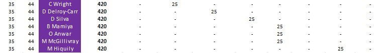 En verde, l0s 10 clasificados via QS del año pasado, en morado, wilcards y en lila, reserva