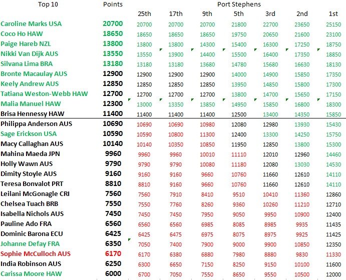 Para conseguir esas dos plazas, tenemos un 6.000 en Australia… y 15 candidatas… Presentamos con las mejoras que suponen cada resultado (desde el 25th) en Port Stephens